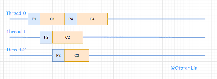 ProduceConsume:将 IO 的生产和消费统一由一个线程来完成,不断循环生产和消费的过程。很明显,这种模式有个很严重的问题,后面的 IO 事件要等待前面的 IO 事件完成,这样的效率明显很差,越后面的 IO 事件需要等待的事件就越长。