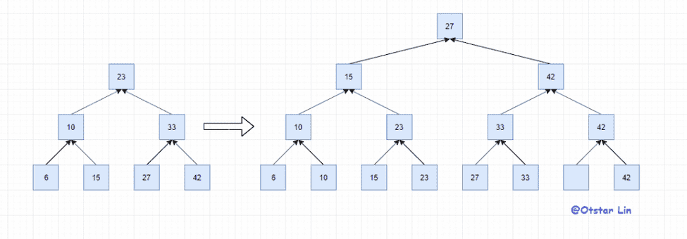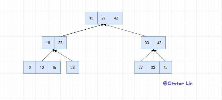 首先为了支持范围查找,二叉树需要进行一些小改造:把数据都移到叶节点中,上层树结构只存储下层的索引。思路类似于跳表,但是上层索引使用的是树结构而不是链表结构。